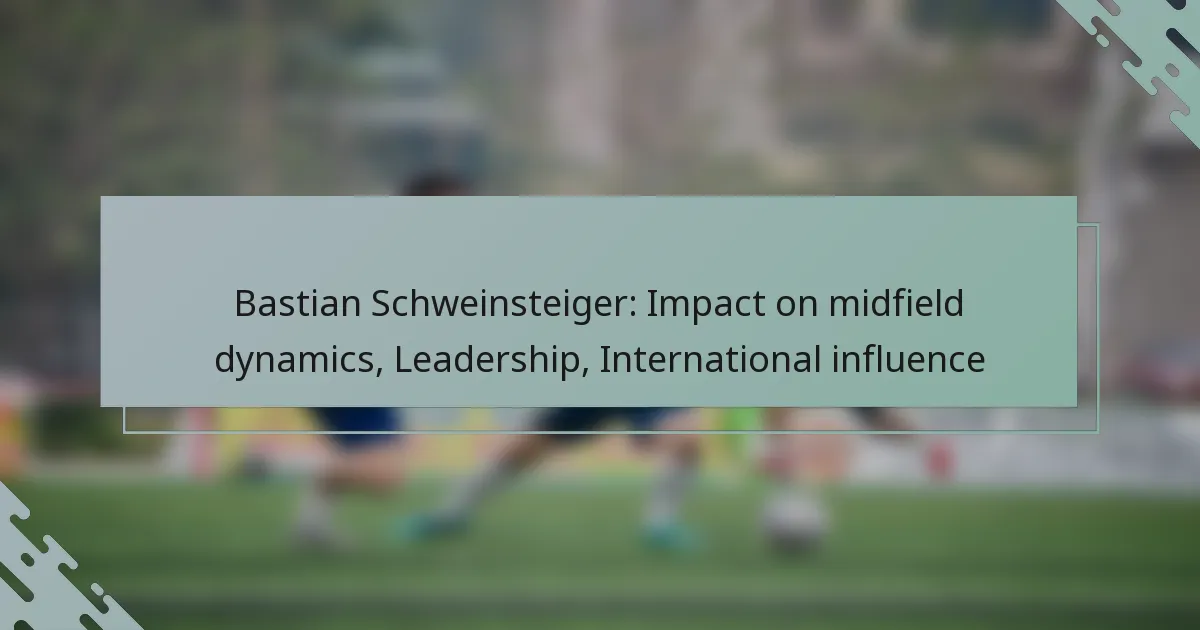 Bastian Schweinsteiger was instrumental in shaping midfield dynamics, serving as both a tactical orchestrator and a defensive anchor. His exceptional leadership on and off the pitch not only influenced team performance but also fostered a strong team spirit, inspiring younger players and enhancing overall morale. Additionally, his impact on international football, particularly during key tournaments like the World Cup, highlighted his ability to elevate team dynamics and mentor emerging talent.